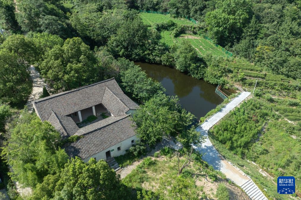 这是位于湖北省孝感市大悟县白果树湾村的新四军第五师国际招待所(无人机照片,7月21日摄)。