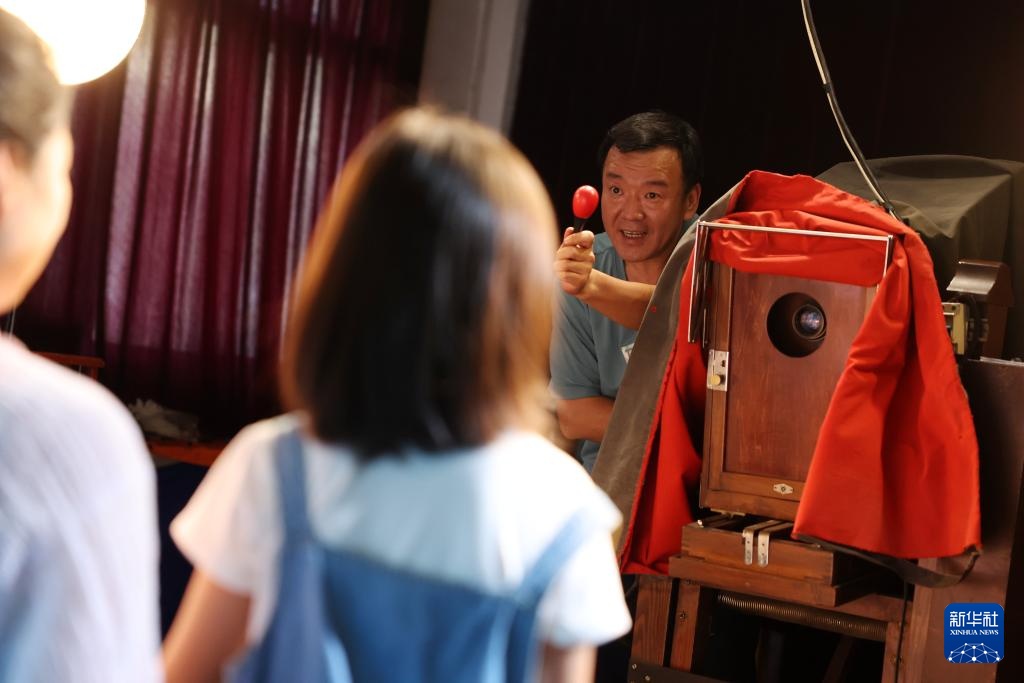 走进阿干照相馆,今年44岁的魏伟轻触着父亲留下的大画幅相机,全神贯注地为慕名而来的客人拍照,这台已使用了50多年的海鸥牌木质大画幅相机曾框取过国营煤矿工人的黝黑笑颜,凝固过老“阿干人”的童年时光,记录过劳模双眸中的自豪……如今,它仍然为来自全国各地的游客定格具有仪式感的瞬间。