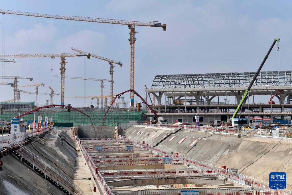 7月30日拍摄的济滨高铁机场隧道施工现场(无人机照片)。