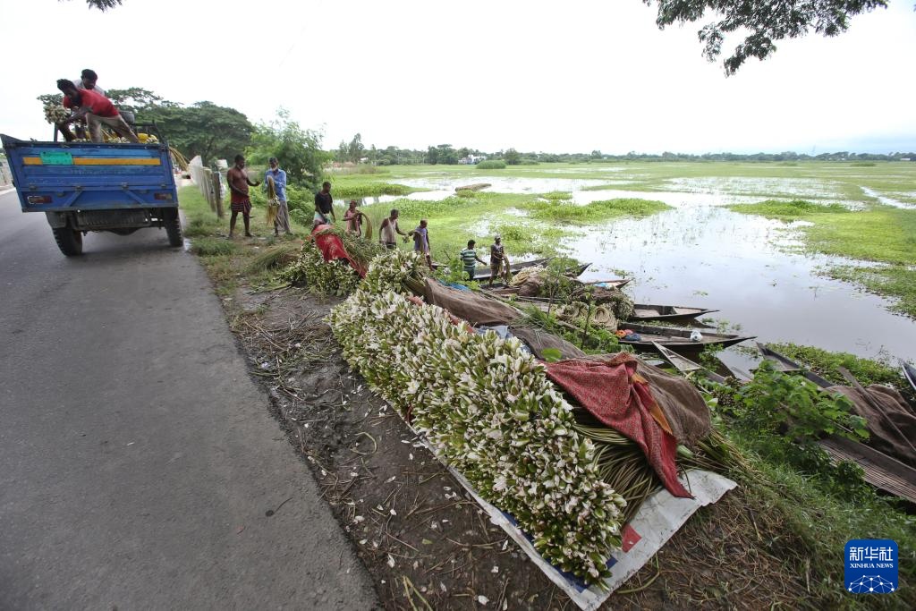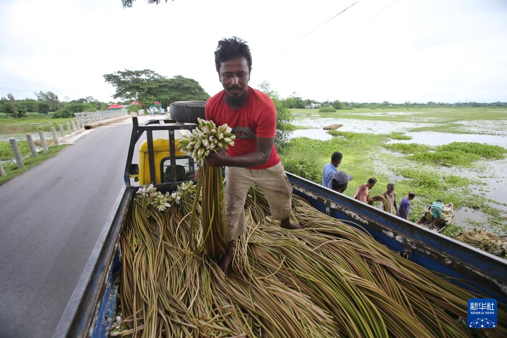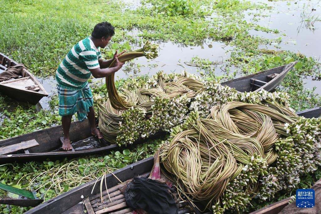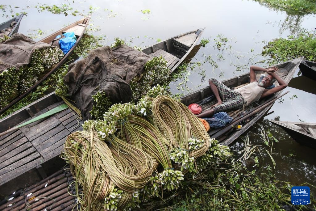 睡莲是孟加拉国的国花,不仅花开美丽,也是当地的特色食材,目前正值采摘季节。
