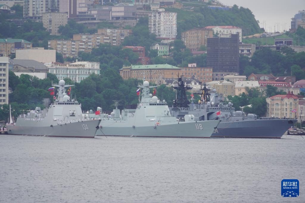 这是7月31日在俄罗斯符拉迪沃斯托克某军港拍摄的参加中俄”海上联合-2025“联合演习的中俄双方部分参演舰艇。
