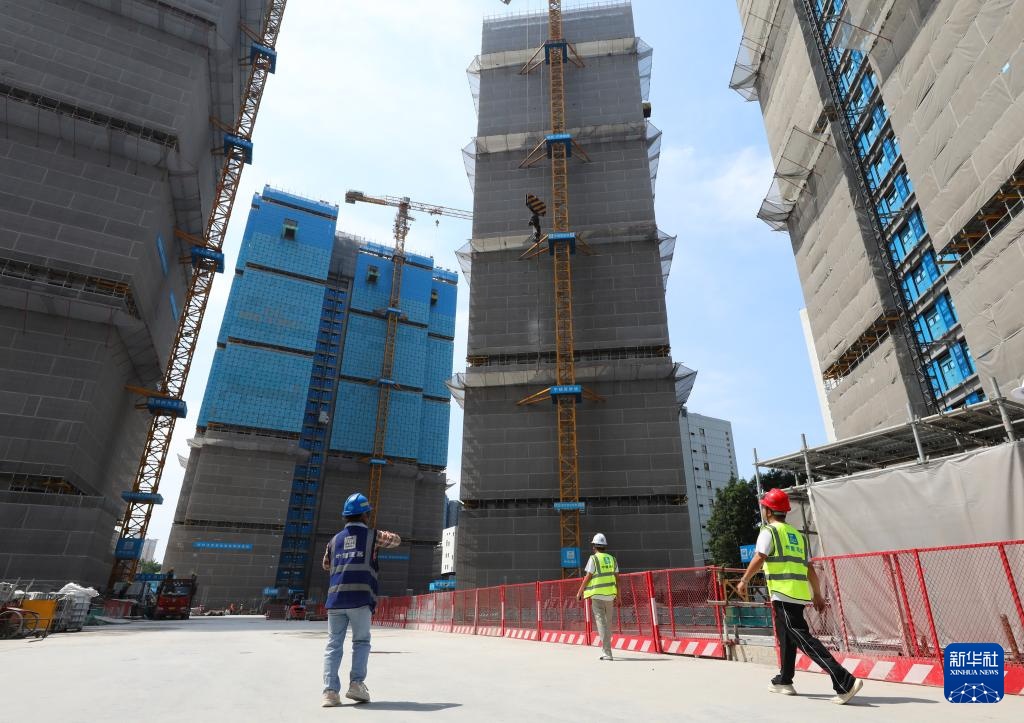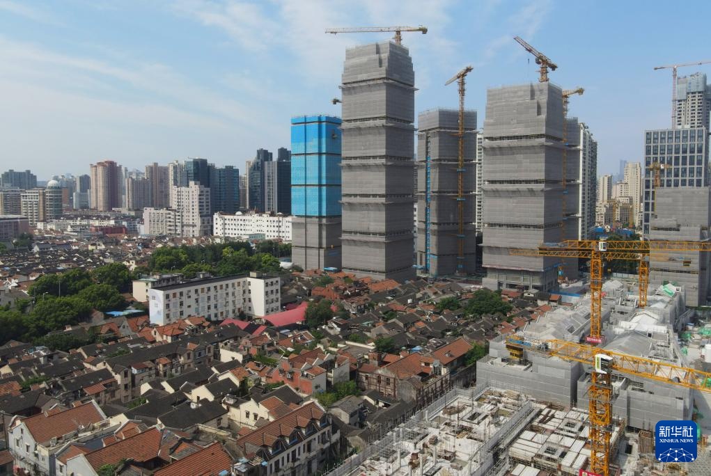 这是上海黄浦区508-514街坊地块旧城区改造一期项目建设中的楼房(7月15日摄,无人机照片)。