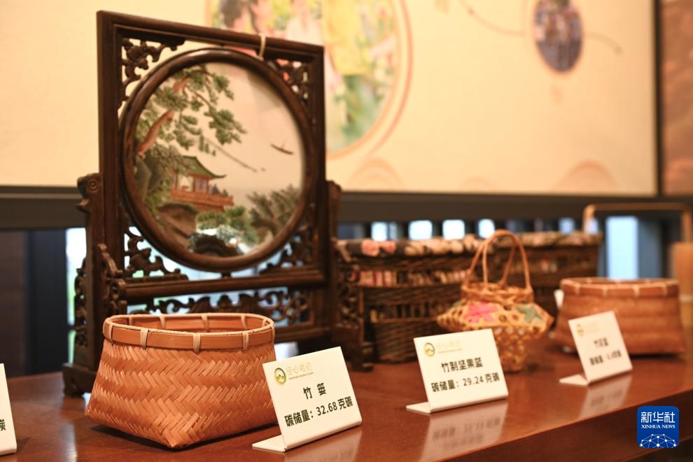 这是8月5日在浙江省杭州市余杭区径山村拍摄的“以竹代塑”文创产品。