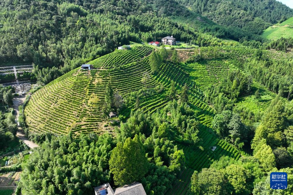 这是8月5日拍摄的浙江省杭州市余杭区径山村茶山(无人机照片)。