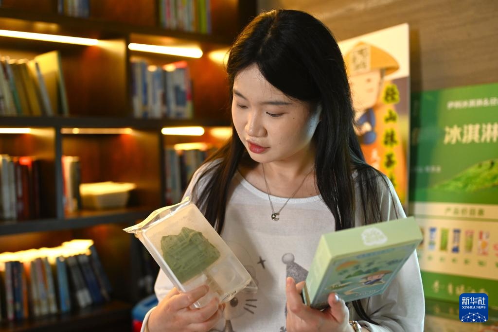 8月5日,在浙江省杭州市余杭区径山村,一名游客购买径山茶文创雪糕。