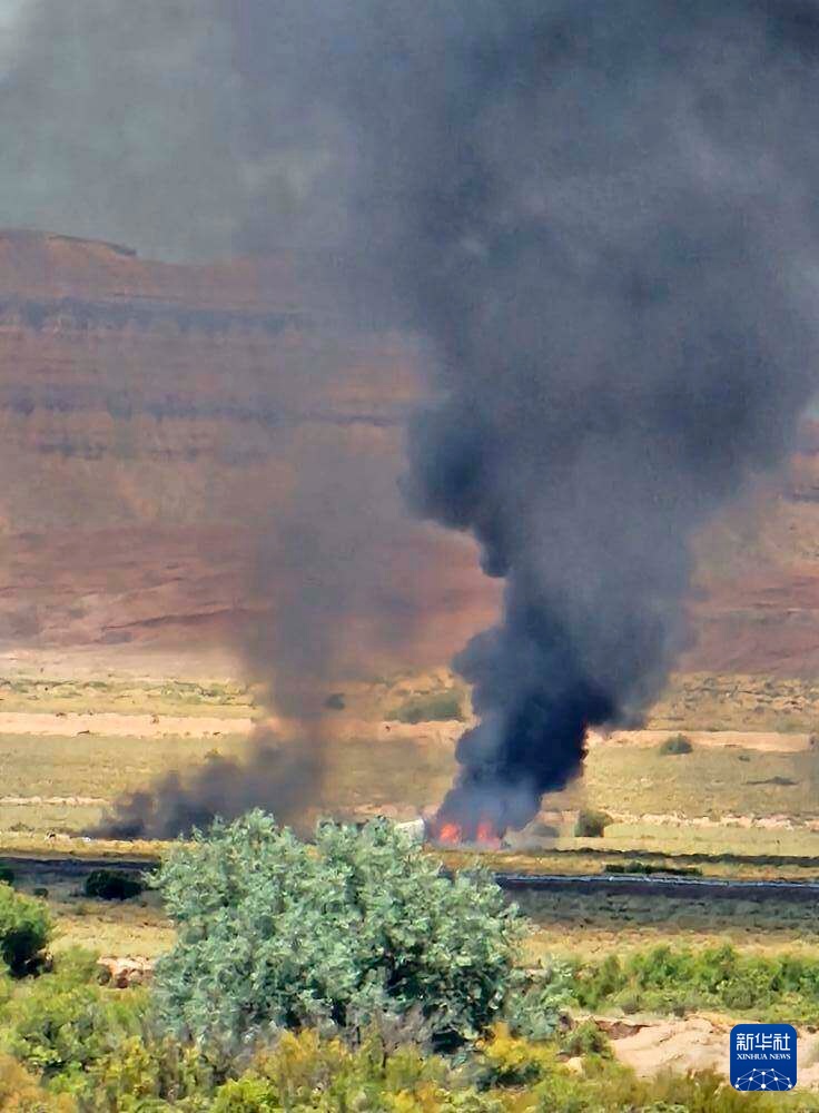 8月5日,在美国亚利桑那州钦利机场附近,坠机现场升起浓烟。