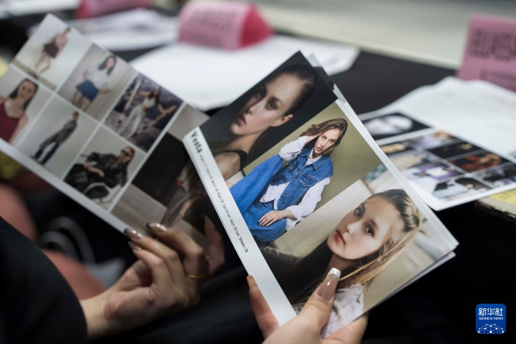 8月7日,在北京798·751园区举办的2025中国国际时装周(秋季)模特大面试上,品牌方与设计师代表在观看模卡(模特的信息卡片)。