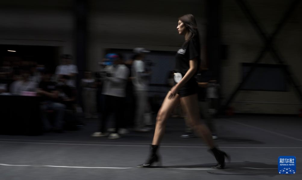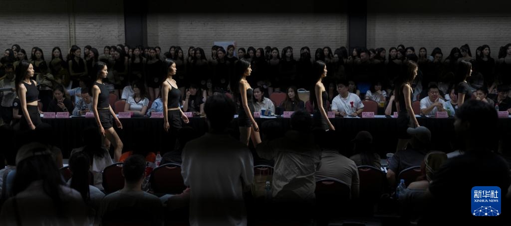 8月7日,在北京798·751园区举办的2025中国国际时装周(秋季)模特大面试上,模特在走台步。