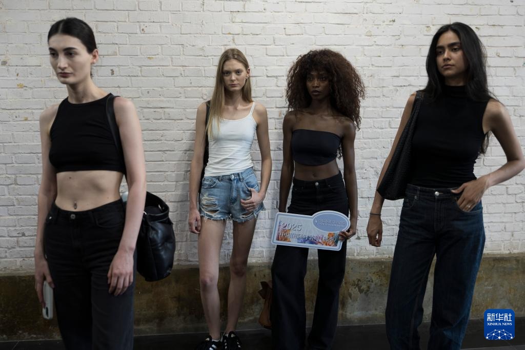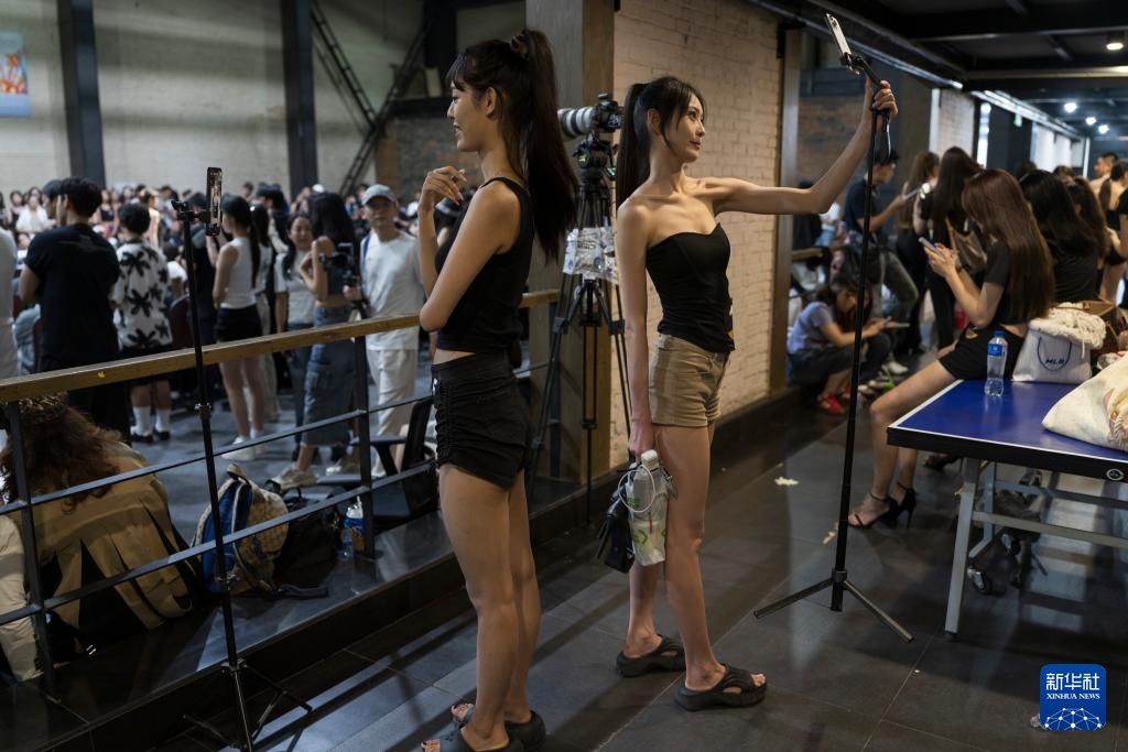 8月7日,在北京798·751园区举办的2025中国国际时装周(秋季)模特大面试上,外籍模特在等待上场。
