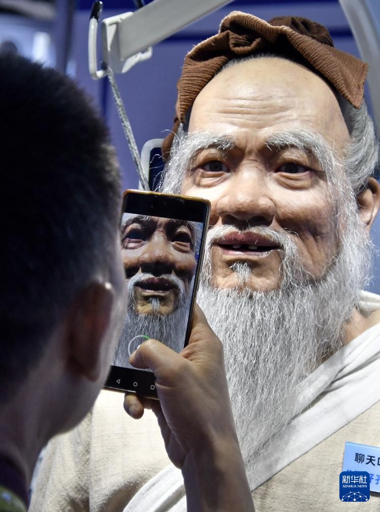 8月8日,观众在2025世界机器人大会现场与展出的智能机器人互动。
