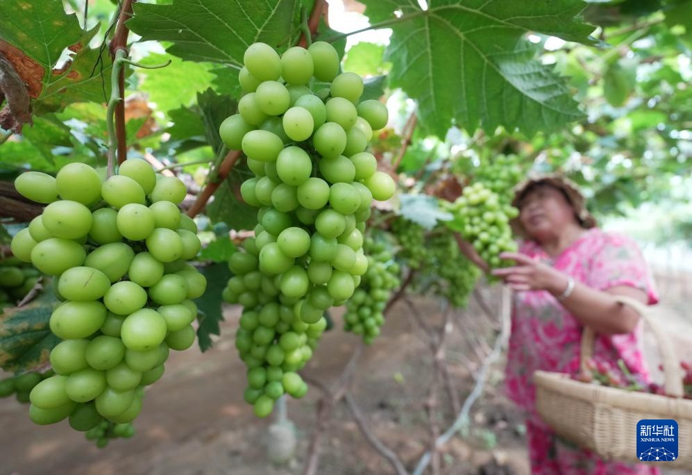 8月8日,果农在河北省昌黎县十里铺乡耿庄村蓝阔庄园采摘葡萄。
