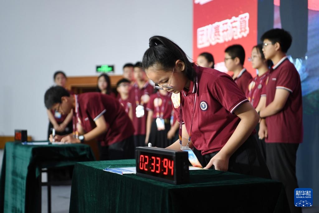 8月8日,参赛选手曾长航在晋级赛项目比赛中展示计算结果。