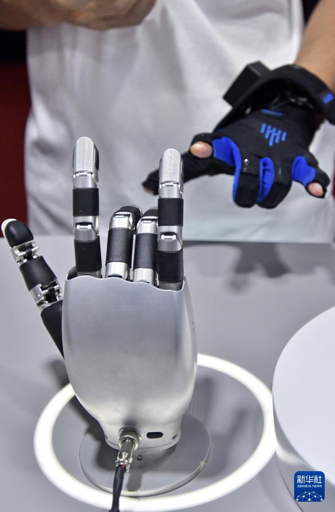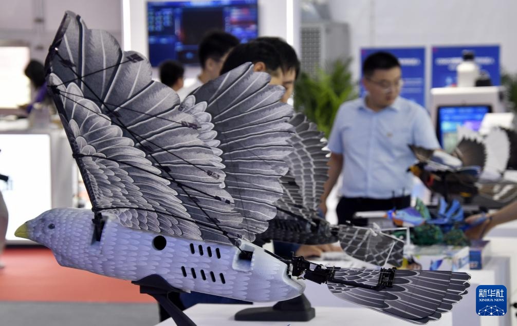 2025世界机器人大会上展示的仿生机器鸟(8月8日摄)。