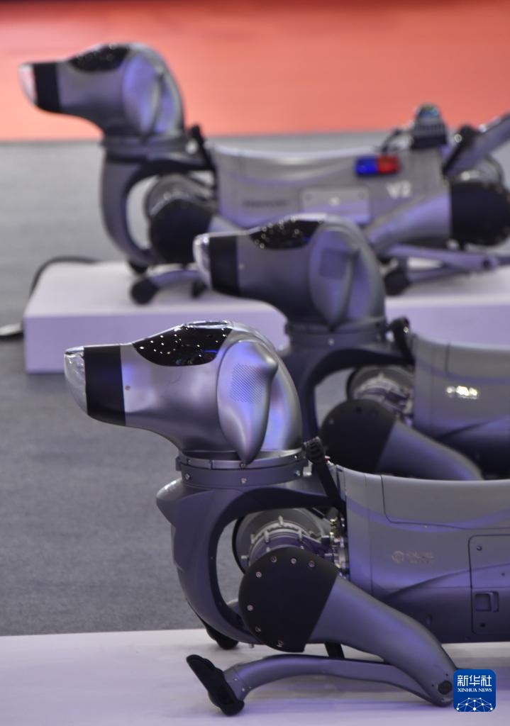2025世界机器人大会上展示的智能机器狗(8月8日摄)。