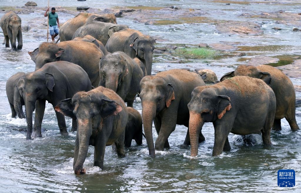 这是8月9日在斯里兰卡平纳维拉大象孤儿院拍摄的象群。