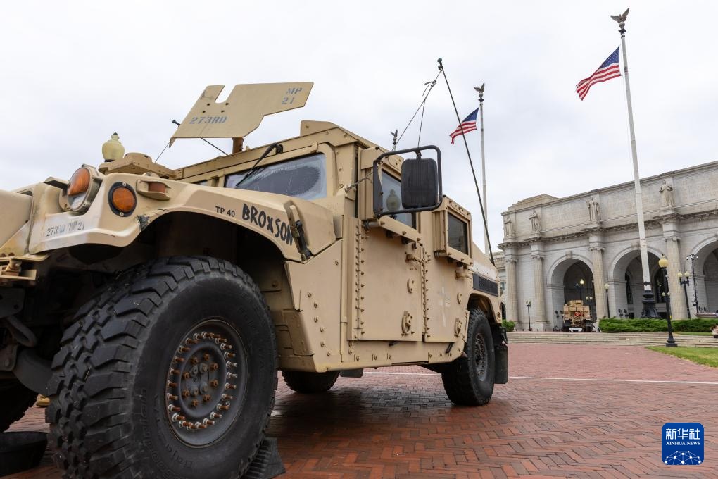 这是8月19日在美国首都华盛顿的联合车站外拍摄的国民警卫队车辆。