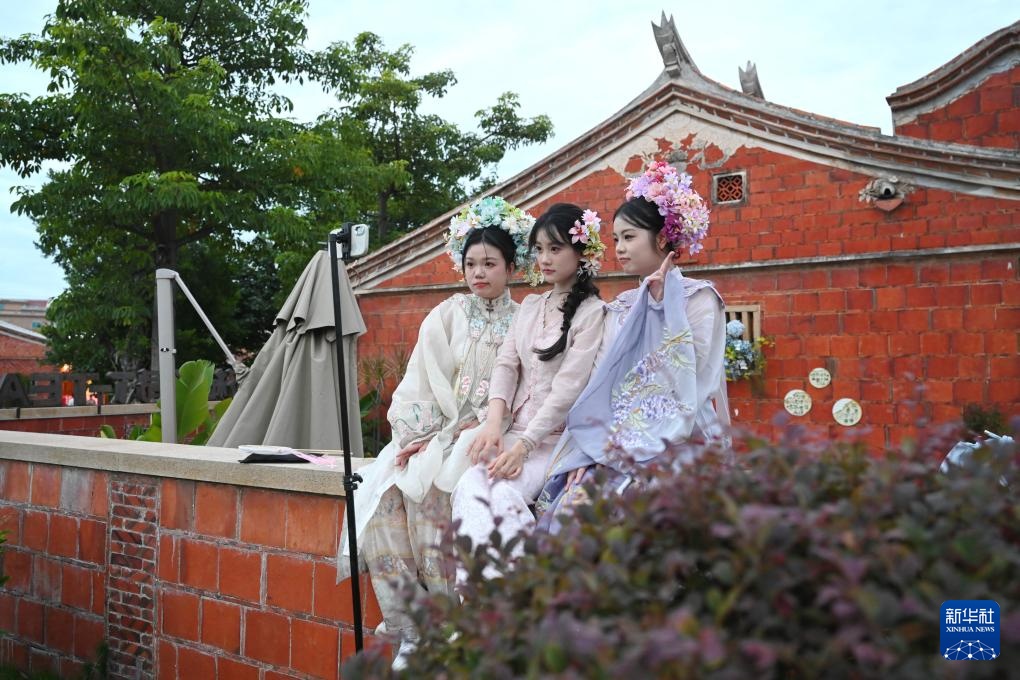 8月19日,游客在福建晋江梧林村体验旅拍。