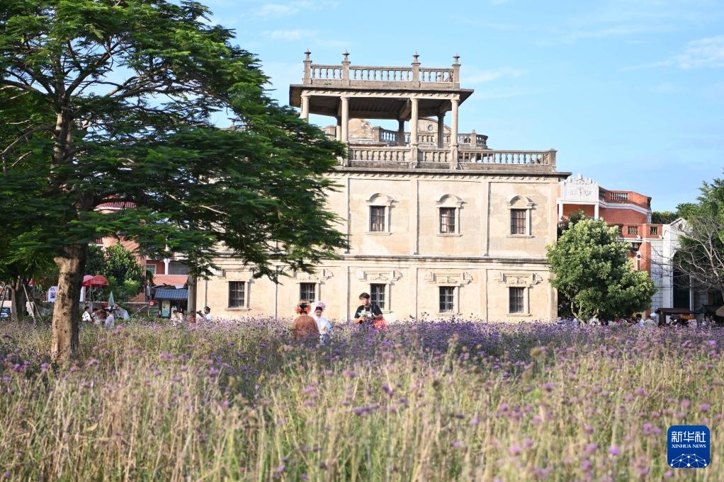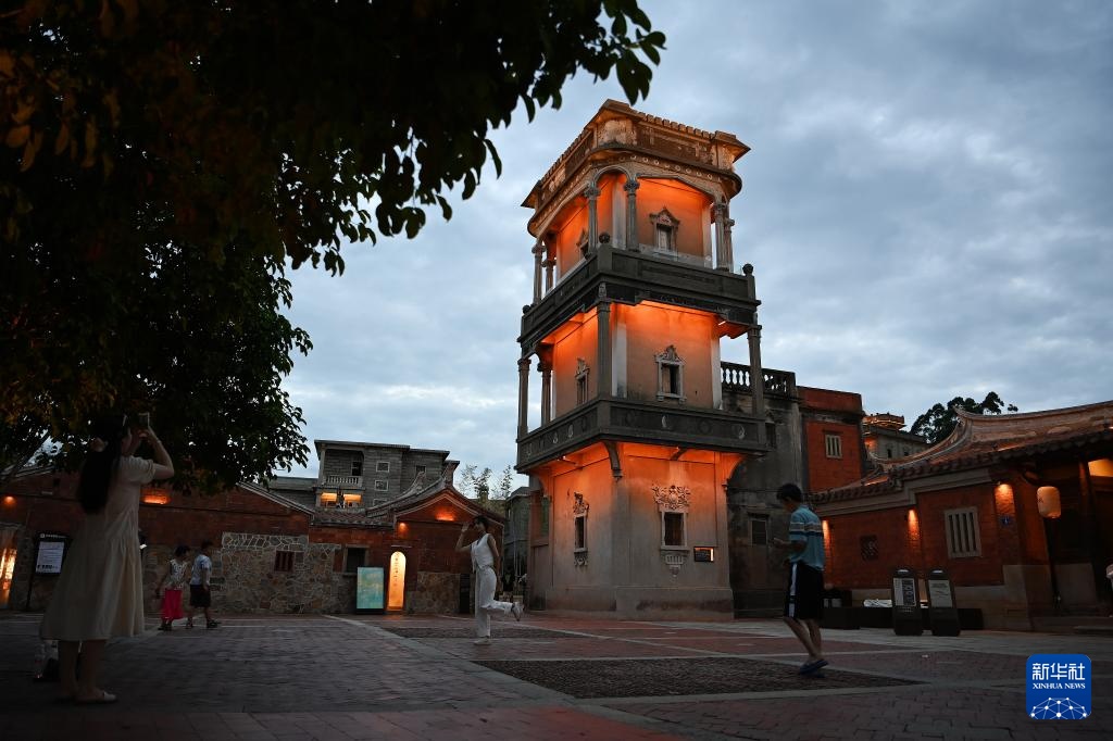 8月19日,人们在福建晋江梧林村的枪楼游玩。