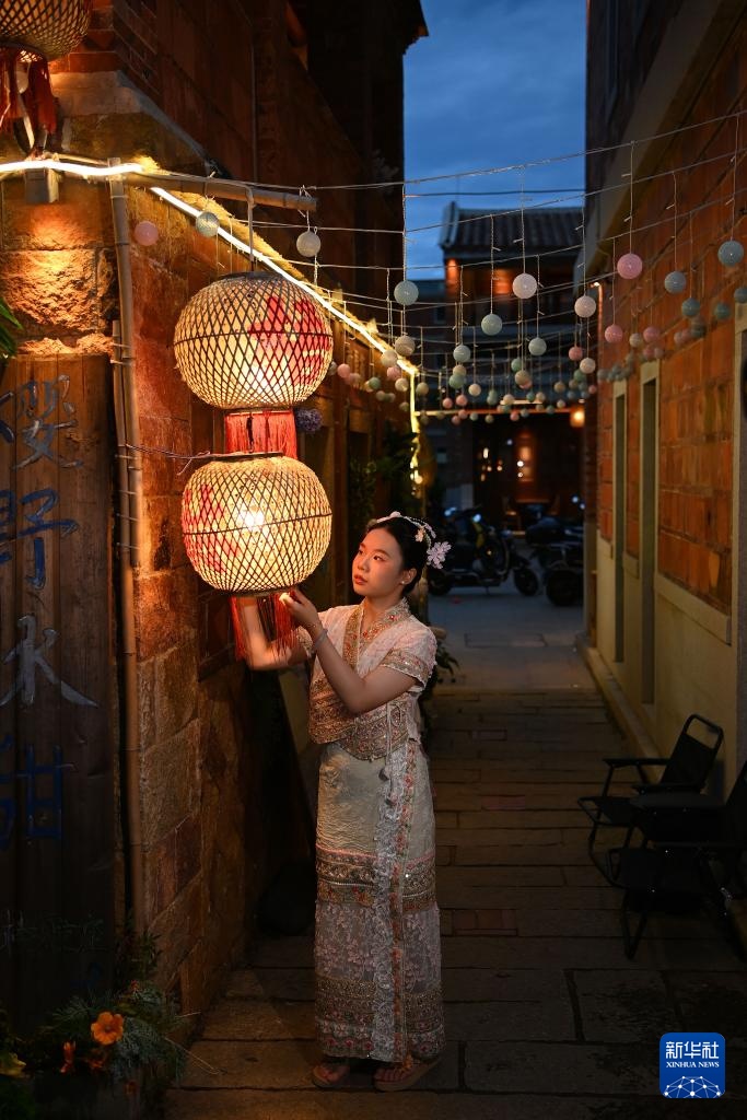 8月19日,在福建晋江梧林村,演员在融合情景剧《侨批往事》中表演娘惹舞。