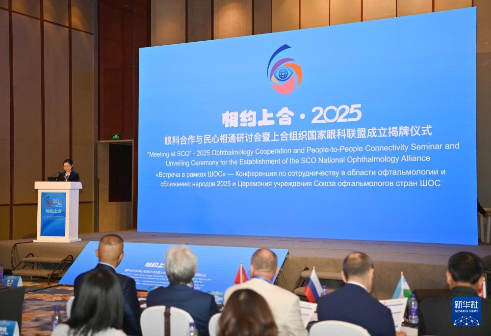 这是8月21日拍摄的“相约上合”——2025眼科合作与民心相通研讨会暨上合组织国家眼科联盟成立揭牌仪式现场。
