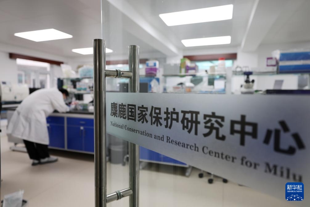 8月18日,科研人员在北京麋鹿苑内的麋鹿国家保护研究中心内工作。