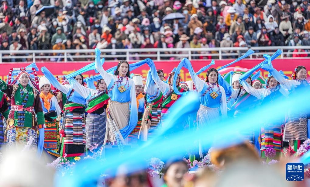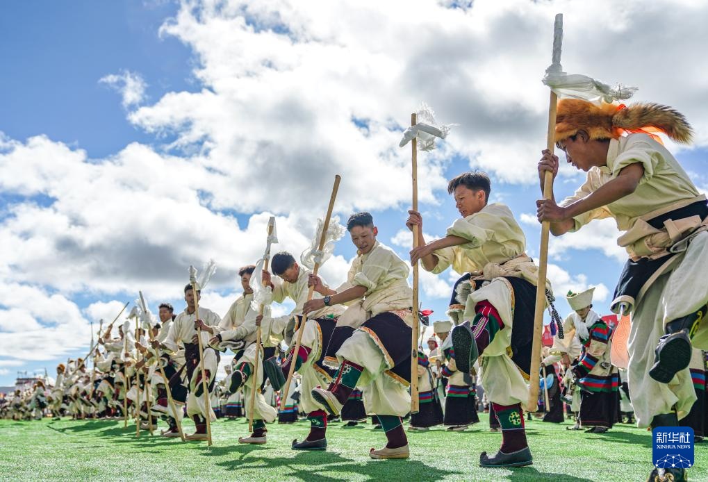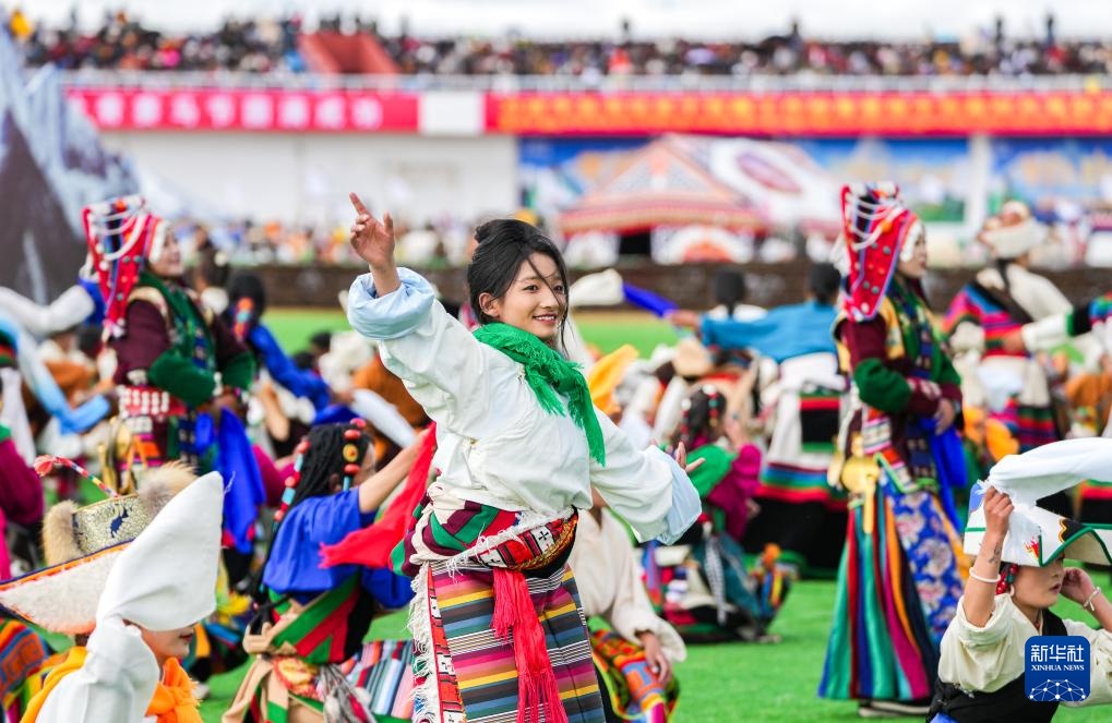 9月5日,演员们在2025年那曲市恰青赛马节开幕式现场表演节目。