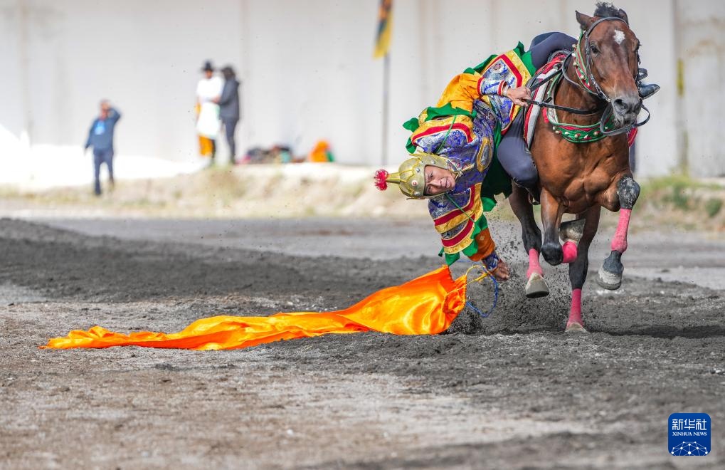 9月5日,骑手在2025年那曲市恰青赛马节表演传统马术。