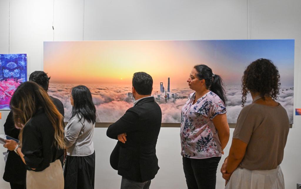 9月5日,观众在土耳其伊斯坦布尔观看“魅力上海”城市形象艺术展。