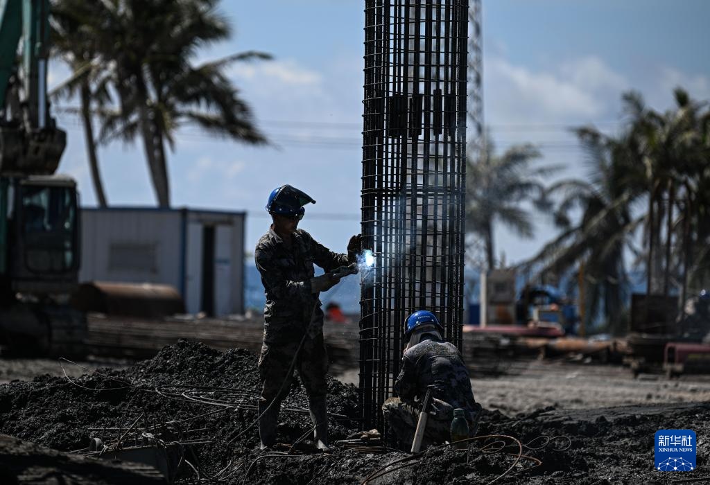 9月5日,工人在海南商业航天发射场二期项目四号发射工位施工。