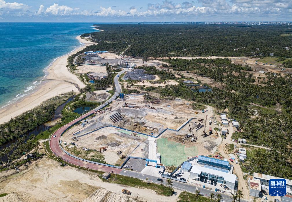 9月5日拍摄的建设中的海南商业航天发射场二期项目,远处是海南商业航天发射场(一期)和文昌航天发射场(无人机照片)。
