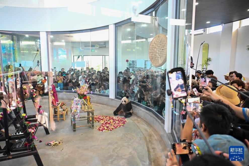 9月6日,在天津动物园熊猫馆,市民前来为大熊猫“格格”庆生。
