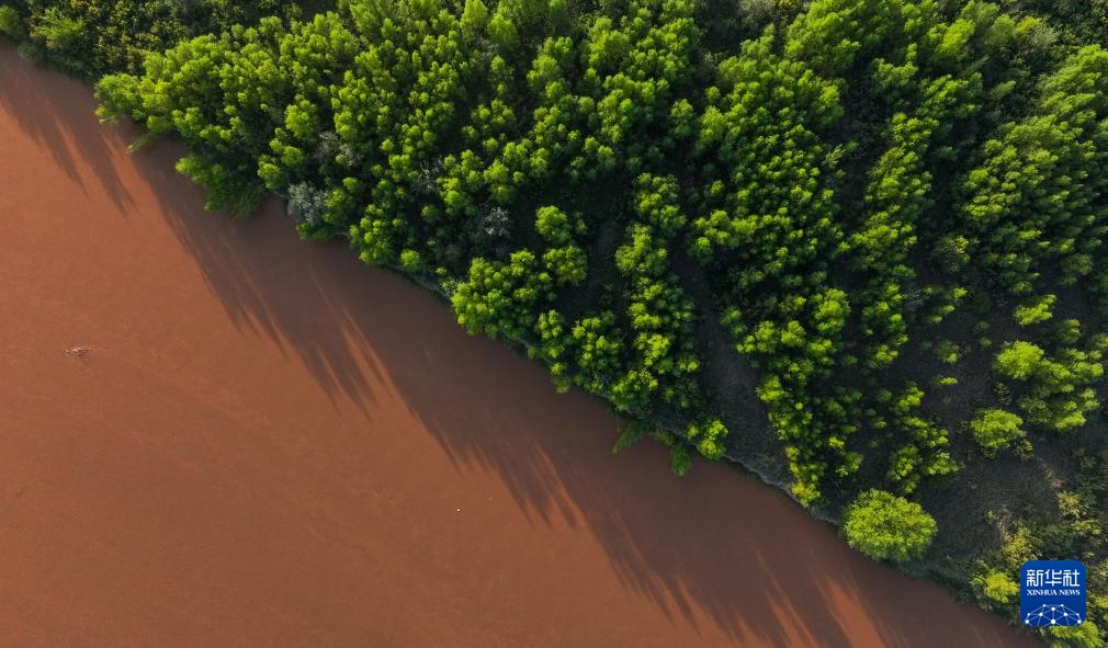 这是9月6日在宁夏石嘴山市平罗县境内拍摄的黄河滩涂湿地(无人机照片)。