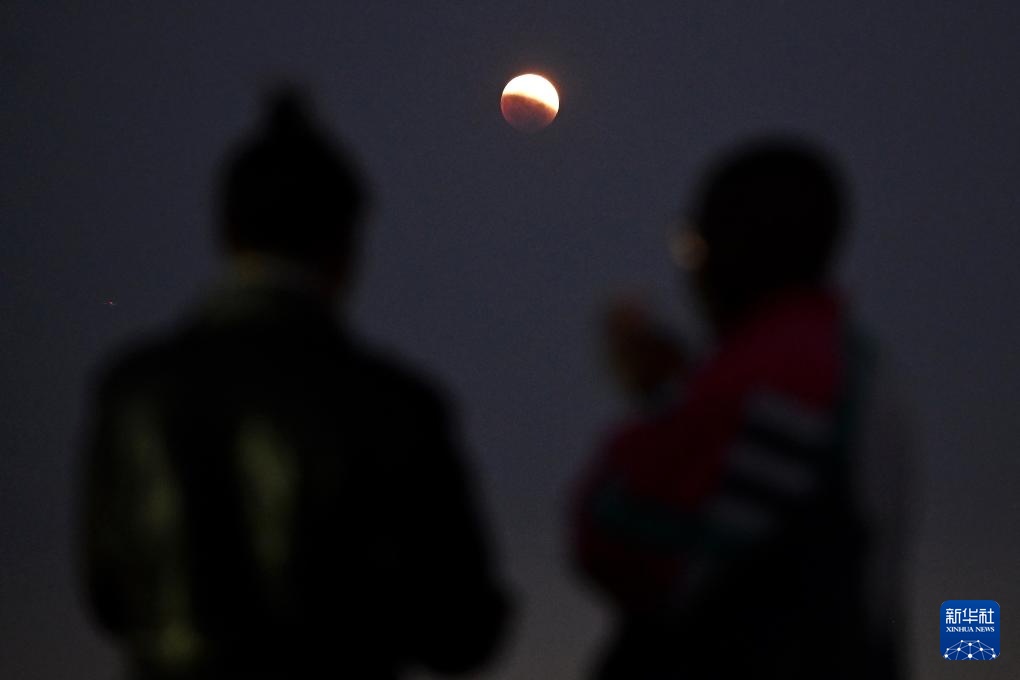 9月7日,在南非开普敦,人们观看城市夜空中的月食。