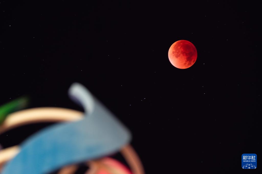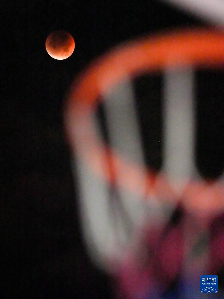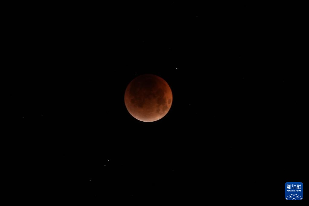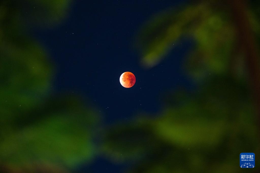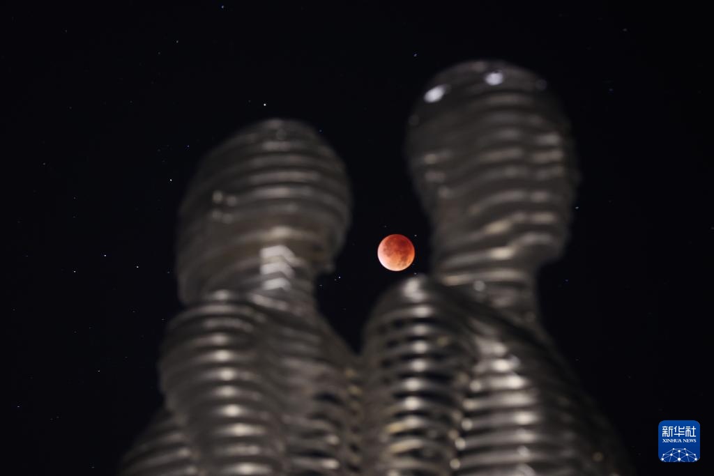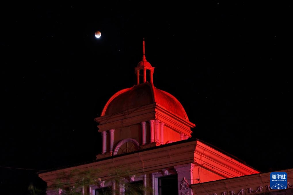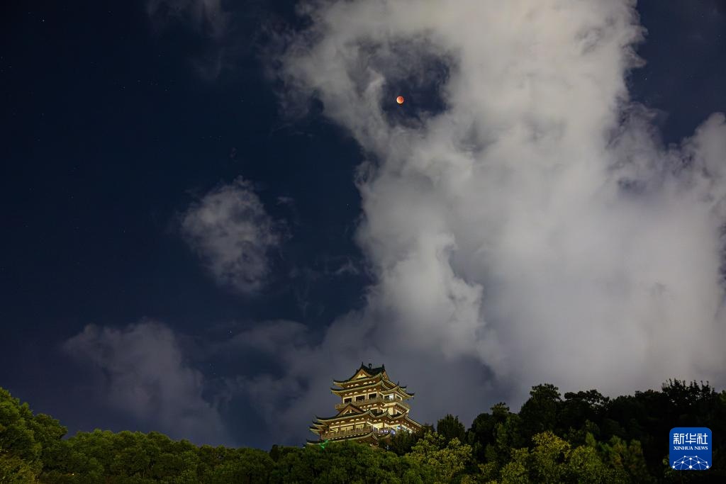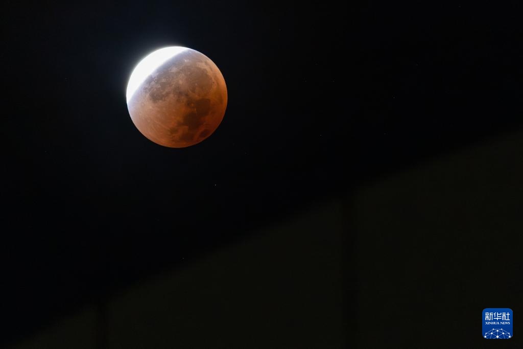 这是9月8日凌晨在内蒙古呼和浩特市拍摄的月食景象。
