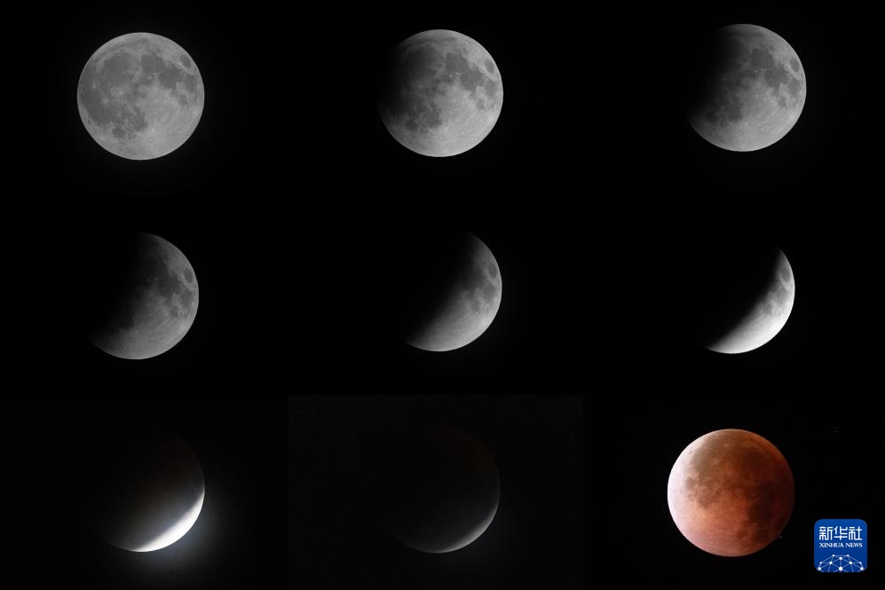 这是月全食过程(拼版照片,9月7日至8日摄)。