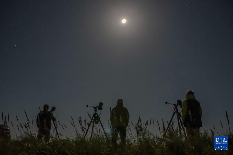 9月8日,在黑龙江省齐齐哈尔市,摄影爱好者在拍摄月食。
