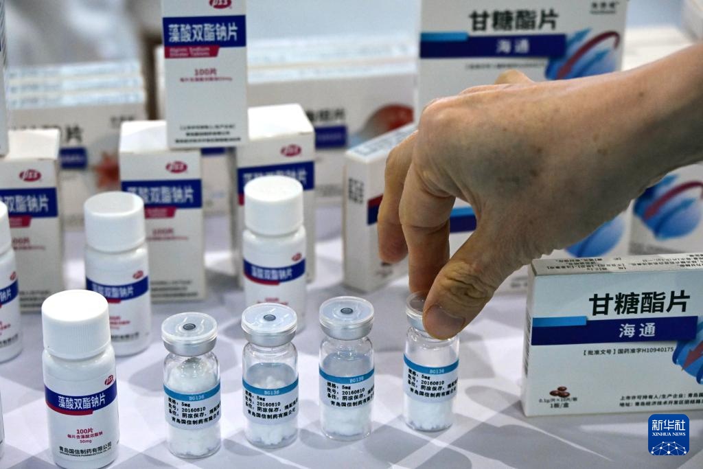 9月8日,工作人员在2025东亚海洋博览会海洋生物医药展区介绍展品。