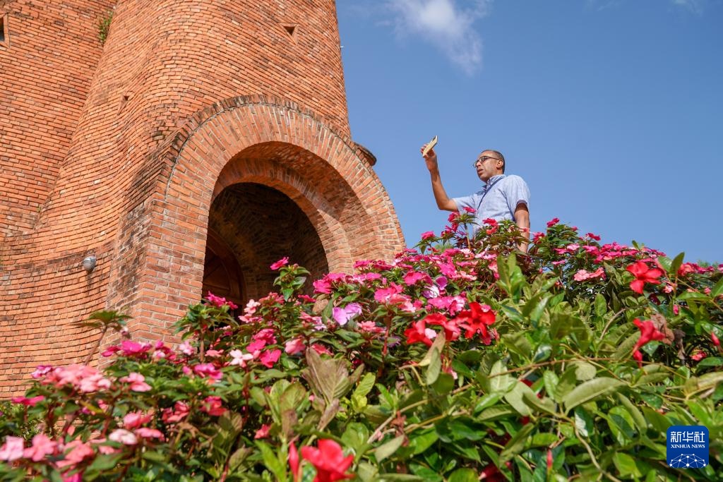 9月8日,一名游客在东风韵小镇参观游览。