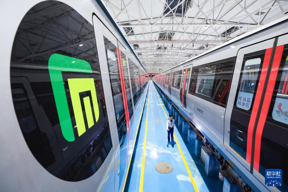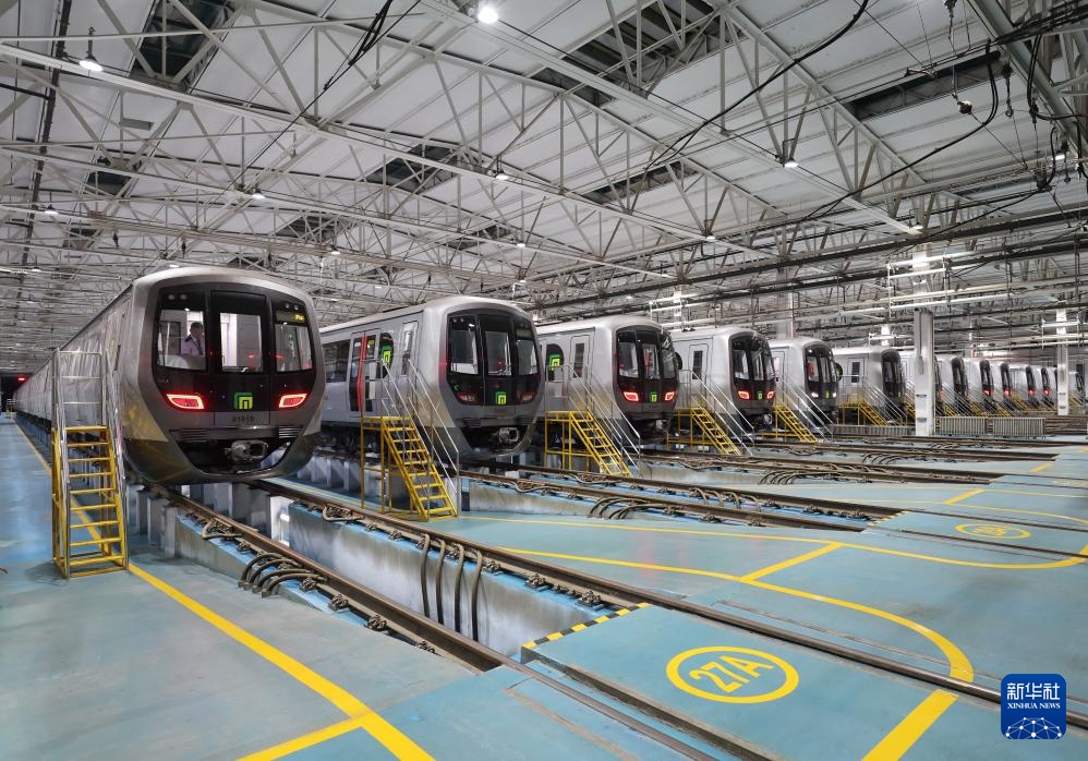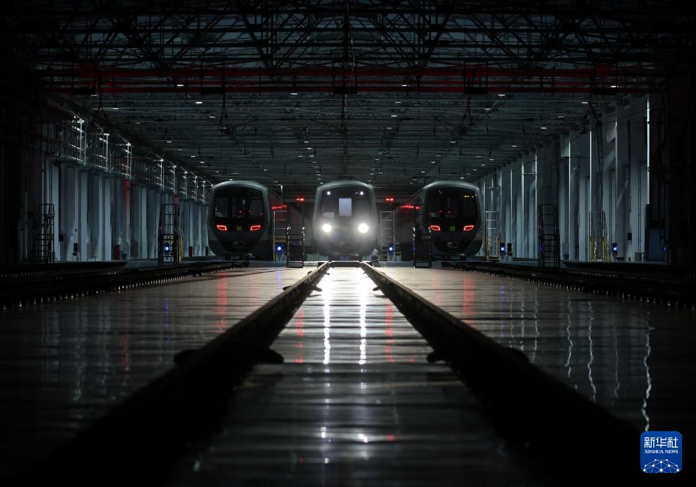 9月9日,地铁列车在石家庄市地铁西兆通车辆段整装待发。