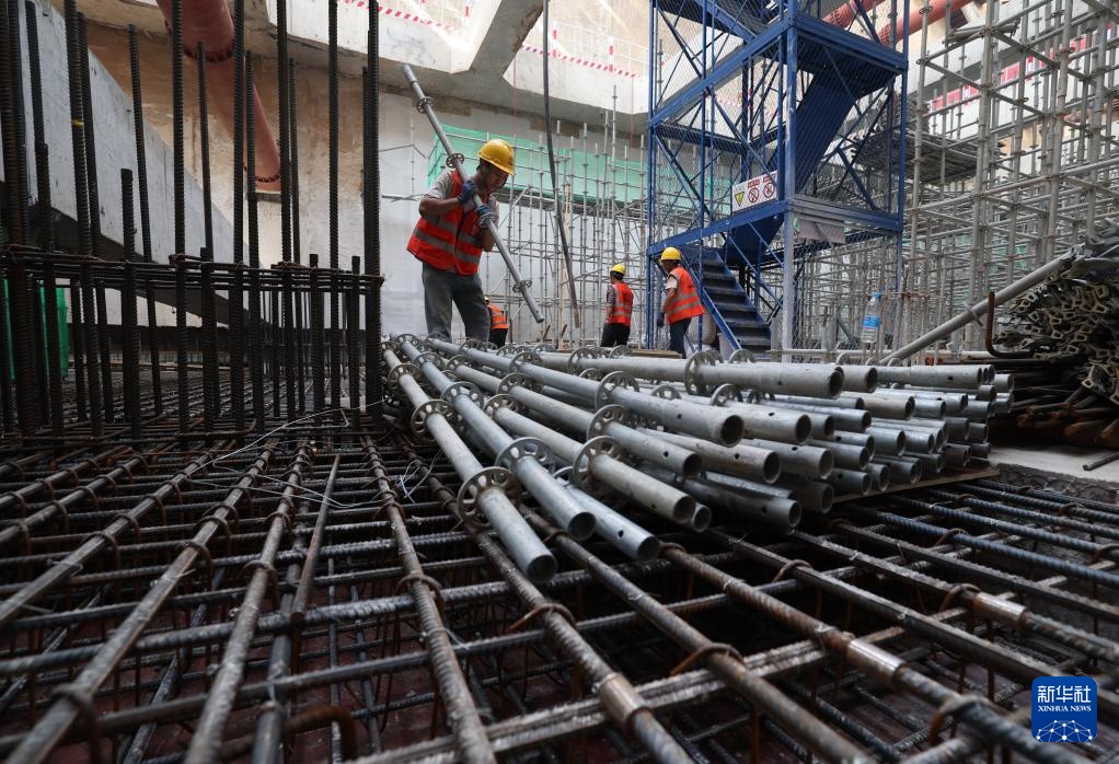 9月7日,工人在石家庄地铁4号线一期工程东垣东路站建设工地施工。