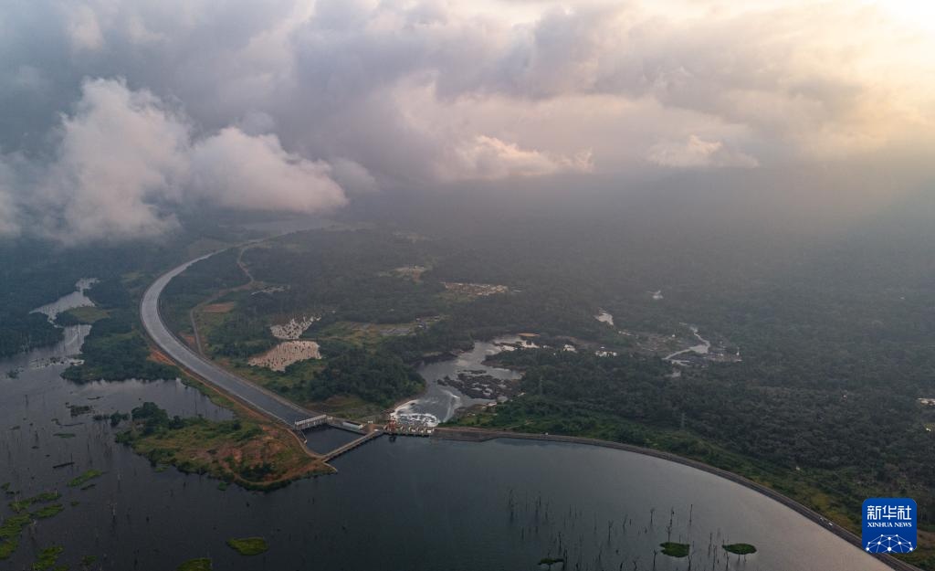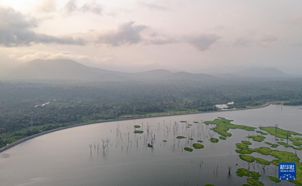 这是在喀麦隆南部大区拍摄的曼维莱水电站库区(无人机照片,6月29日摄)。