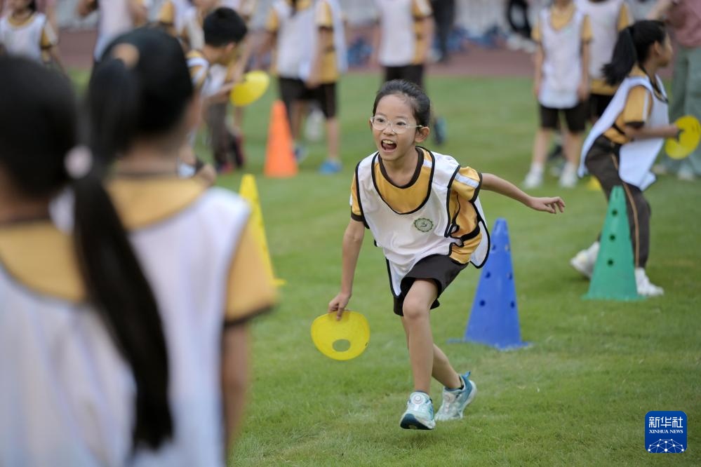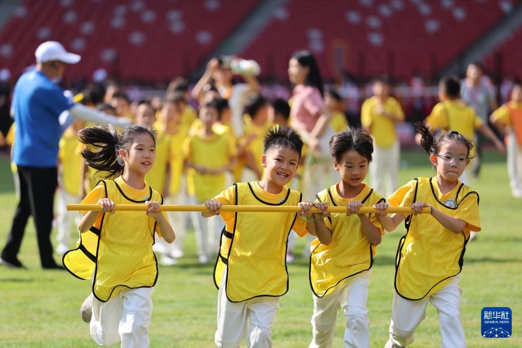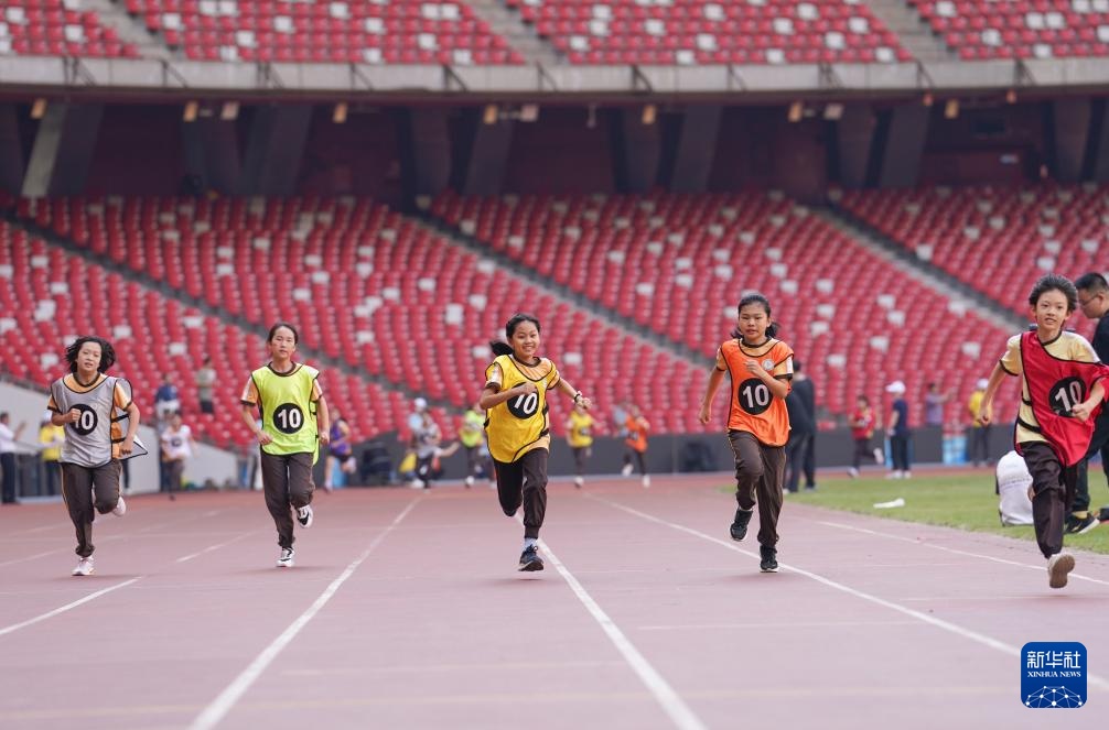 9月9日,在国家体育场,学生们参加“旋风跑”项目。