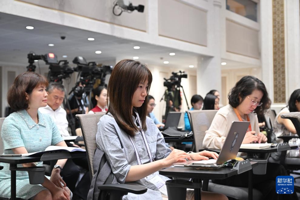 9月10日,国务院新闻办公室在北京举行“高质量完成‘十四五’规划”系列主题新闻发布会,文化和旅游部副部长、国家文物局局长饶权,国家文物局副局长解冰,国家文物局副局长乔云飞,国家文物局副局长孙德立介绍“十四五”时期文物事业高质量发展有关情况,并答记者问。这是记者在发布会上工作。