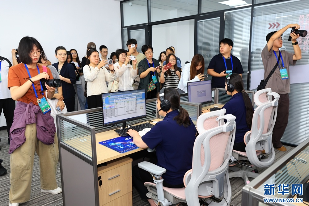 图为9月9日,记者团在临沂公交“淑琴”热线中心采访调研。新华网发(魏伟 摄)
