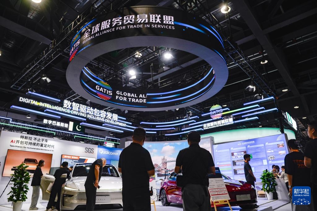 9月10日拍摄的2025年服贸会主题展全球服务贸易联盟展台。