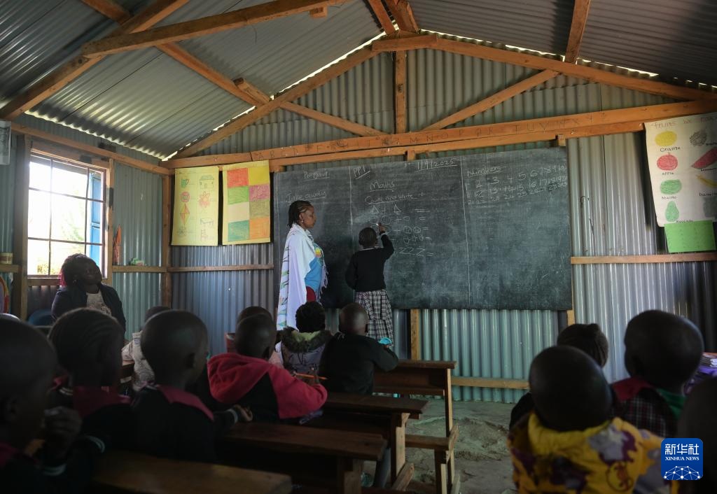 9月1日,学生们在肯尼亚西南部纳罗克郡的光明小学上课。