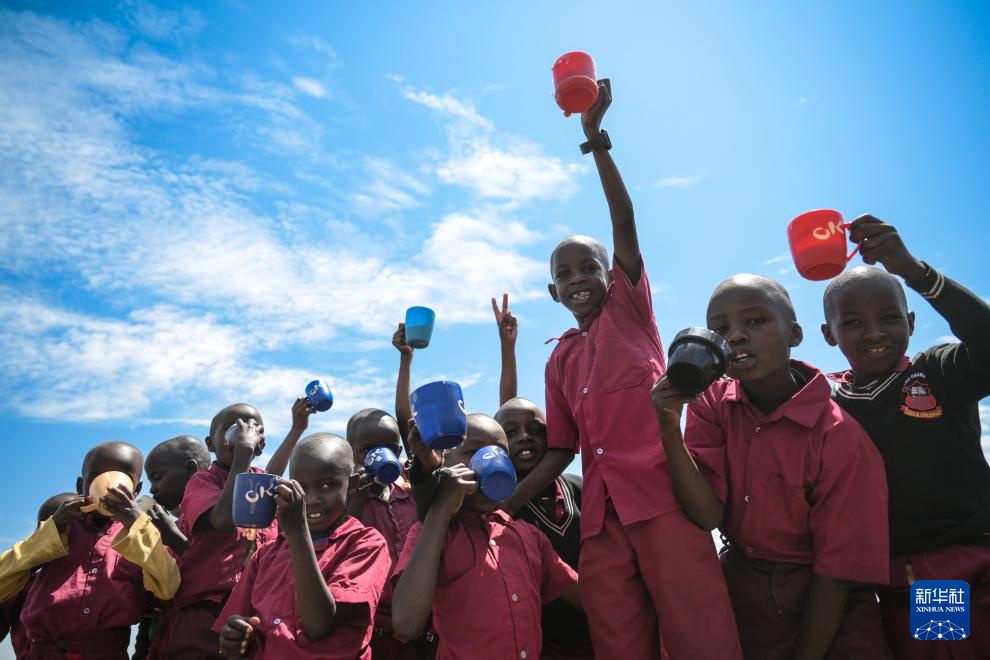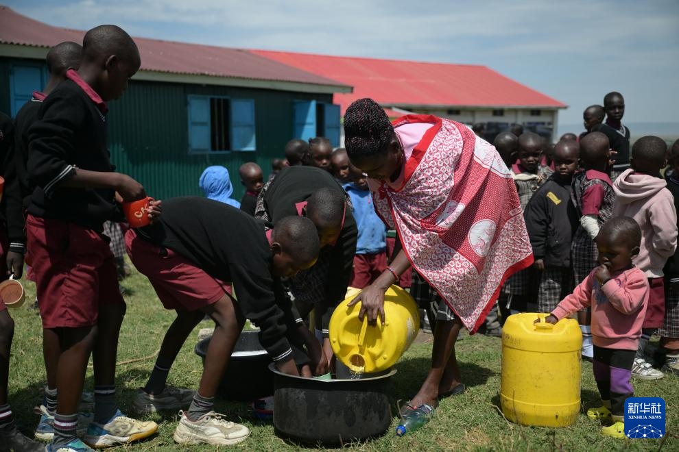 9月1日,在位于肯尼亚西南部纳罗克郡的光明小学,学生们在午餐前清洗餐具。