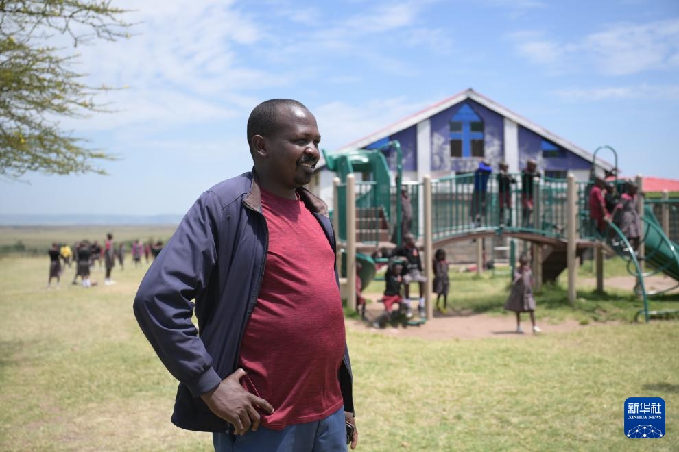 9月1日,在位于肯尼亚西南部纳罗克郡的光明小学,校长约翰逊·基赛卡在操场上注视着学生们的课间活动。