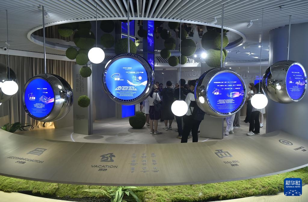 9月10日,来访者在上海虹桥临空经济示范区内的携程集团探索中心参观。