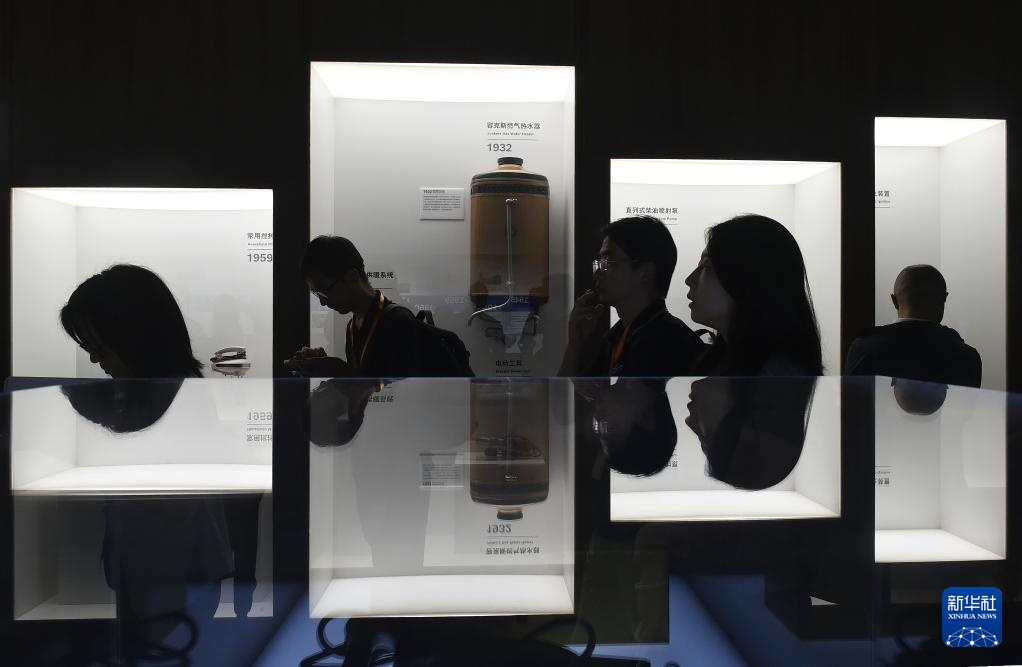 9月10日,在上海虹桥临空经济示范区内的博世公司展厅,来访者在展品前交流。